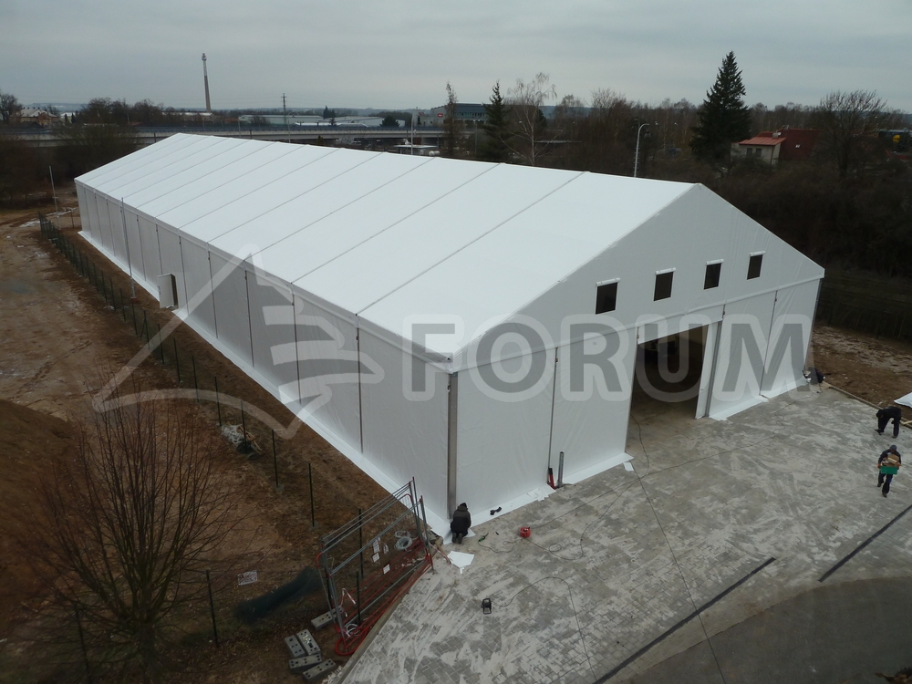 Pre spoločnosť HBPO Czech sme vyrobili stanovú halu s rozmermi 20 x 60 m a výškou bočnej steny 5 m.
