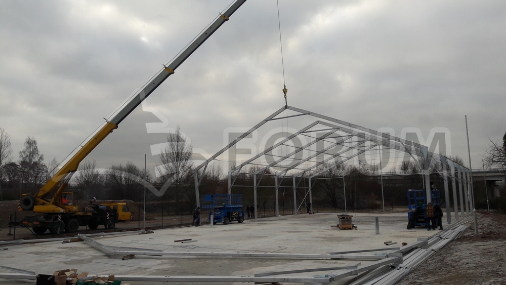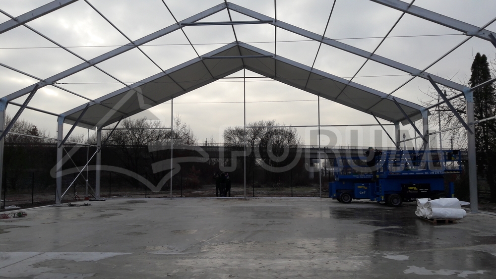 Plachtové opláštenie je vyrobené z vysoko odolnej plachty Flexlight 782 S2 so 7-ročnou zárukou. Hala bola inštalovaná na špeciálne vybudovanej betónovej ploche s odvodňovacími kanálmi po obvode, do ktorých je odvádzaná všetka dažďová voda z haly. Hlavná konštrukcia bola dokončená za 3 dni. Ide o ďalší spôsob, ako uspokojiť potrebu nových krytých priestorov.