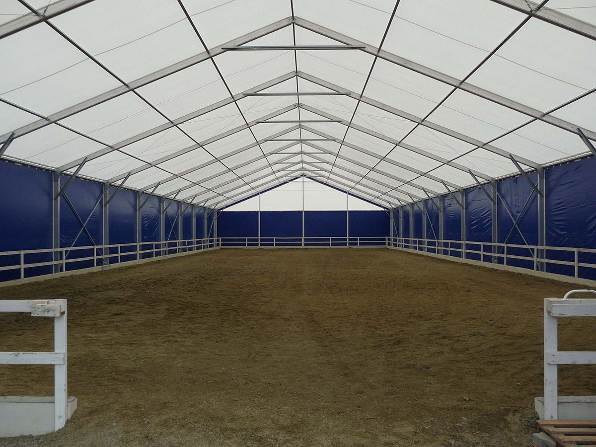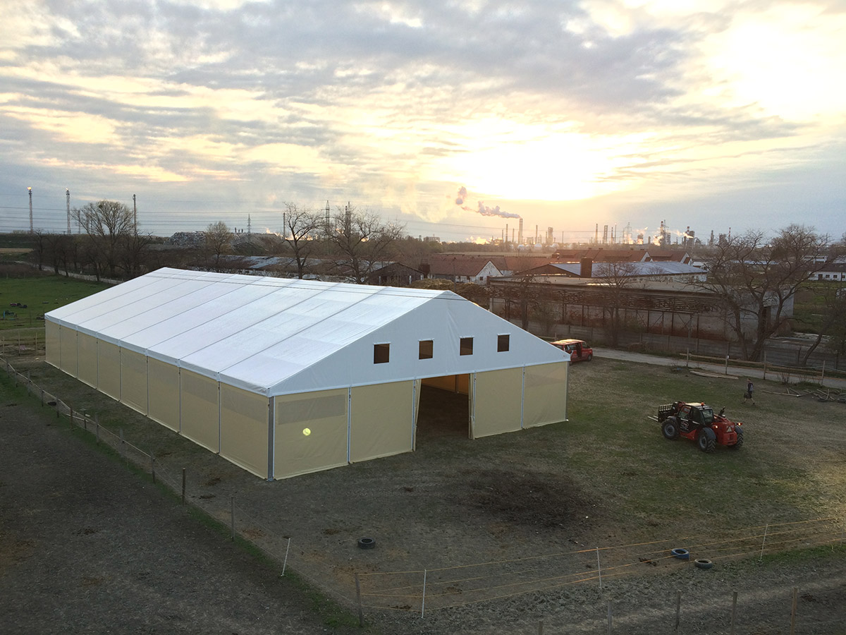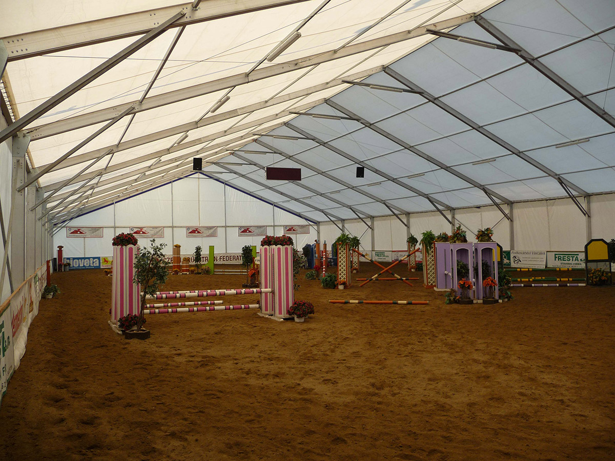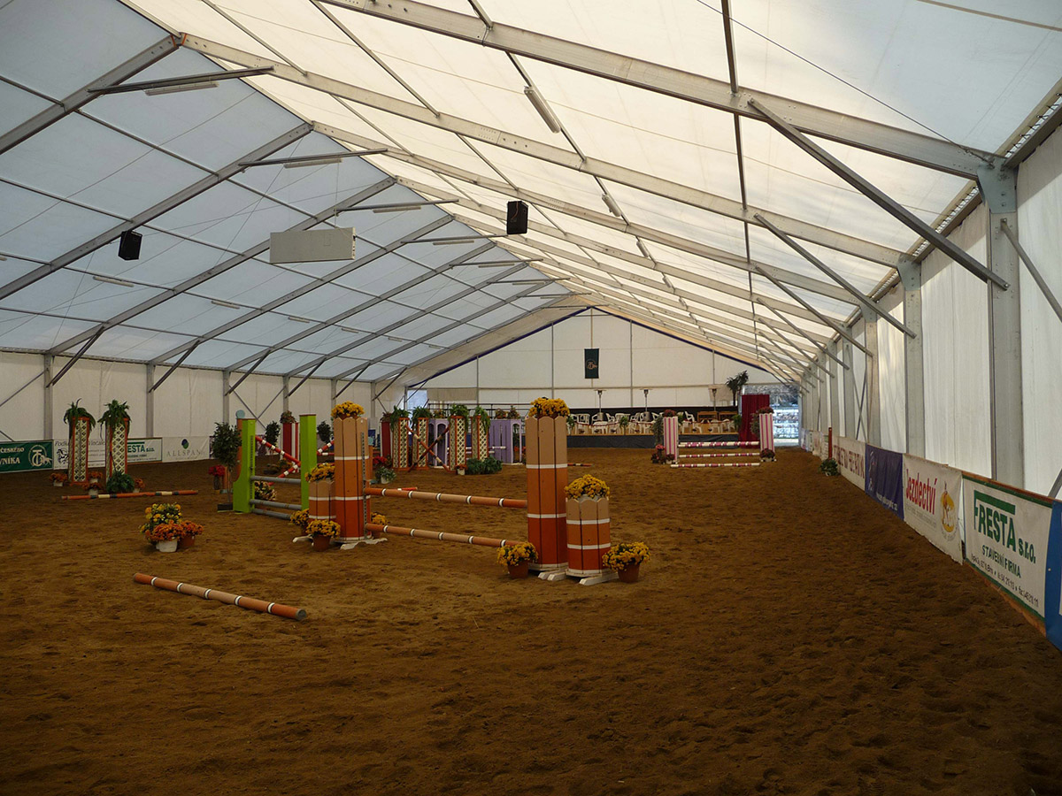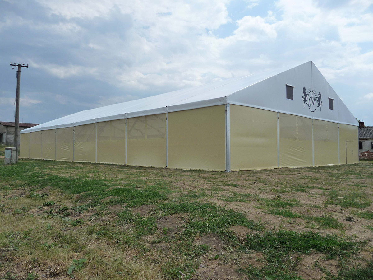 V posledných rokoch sme úspešne vyvinuli a zaviedli výrobu funkčných plachtových a stanových hal Forum prispôsobených pre jazdecké školy, chov, tréning a dostihy koní alebo pre chov domácich zvierat. Stanové haly je možné prispôsobiť konkrétnym rozmerovým požiadavkám, vrátane inštalácie príslušenstva. Ventilačný systém, dvere, brány, okná, osvetlenie atď.