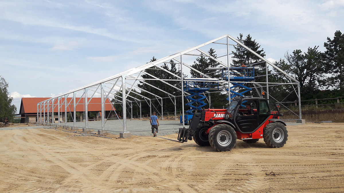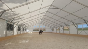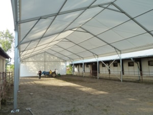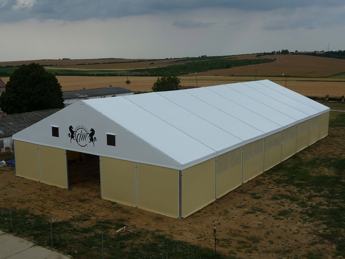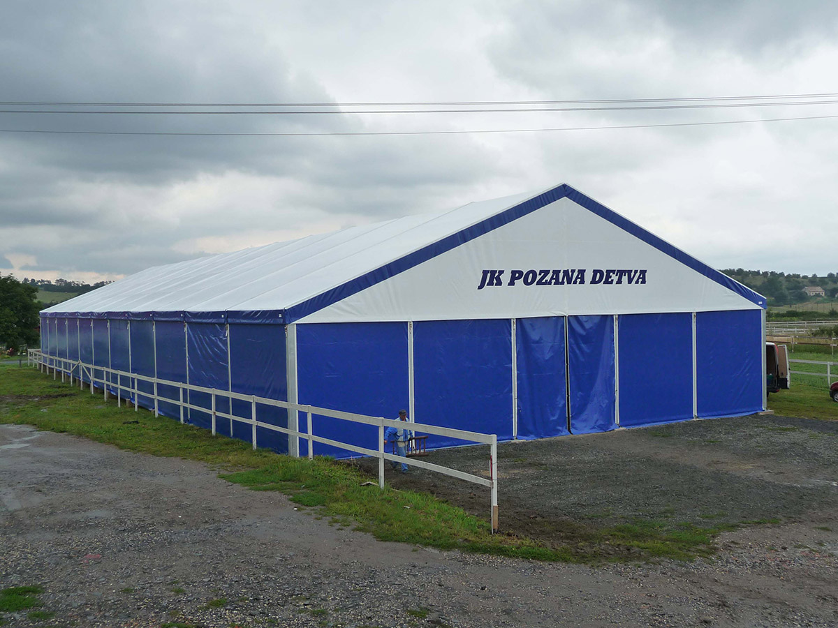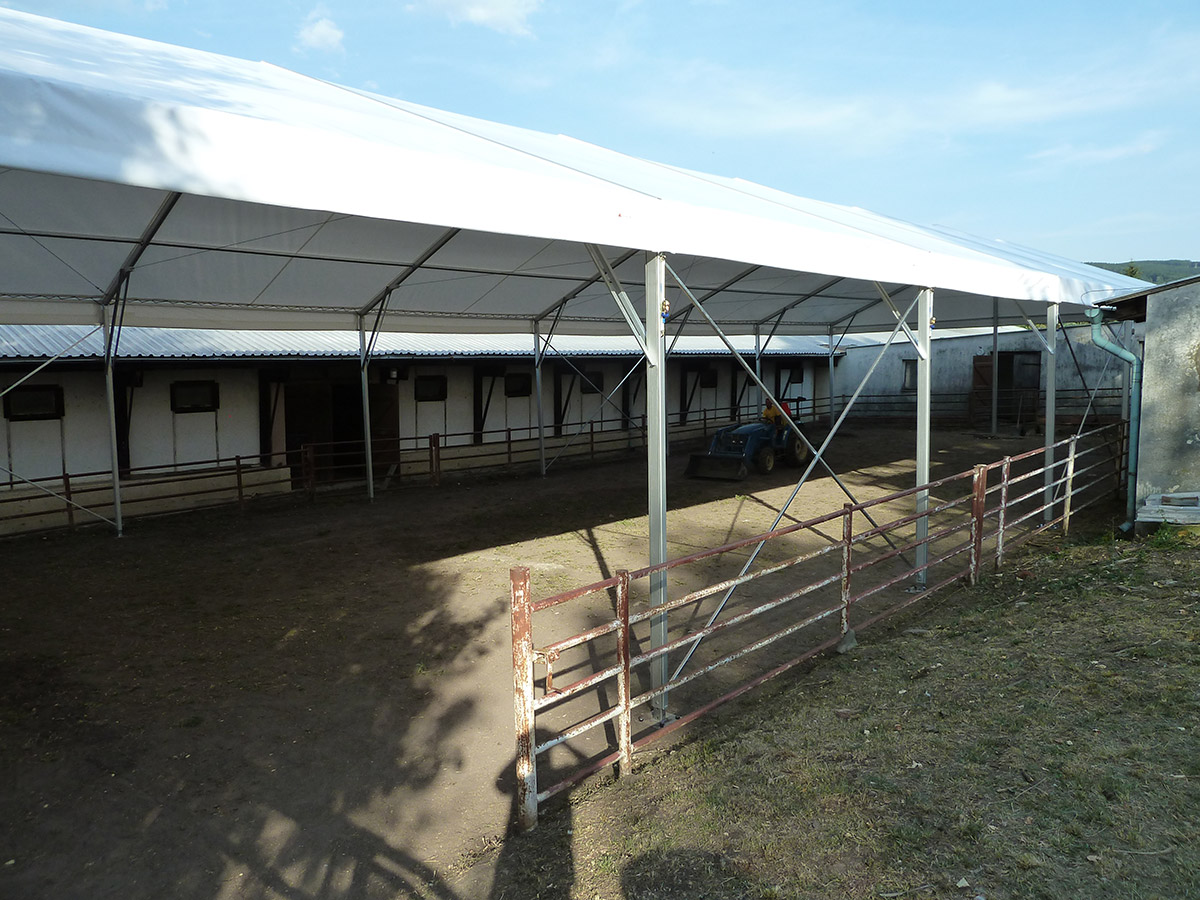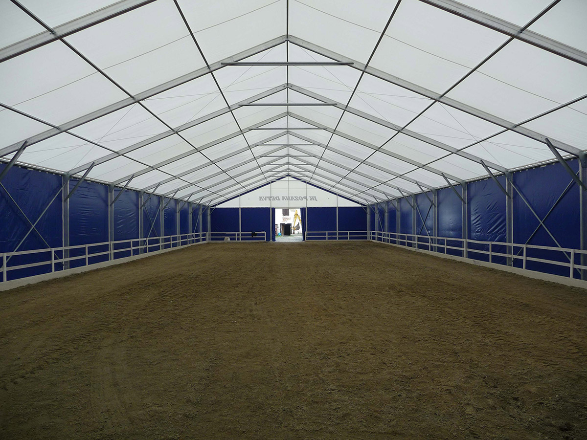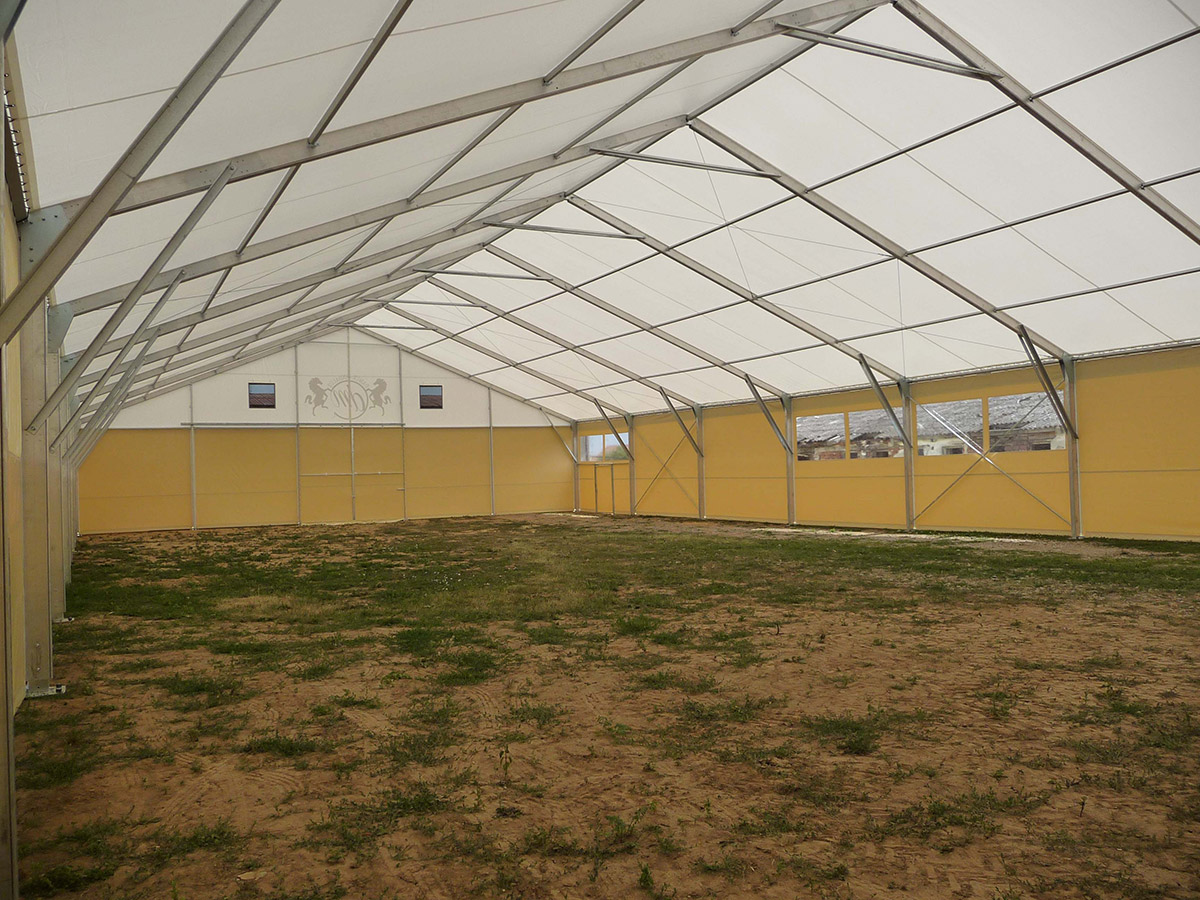 V posledných rokoch sme úspešne vyvinuli a zaviedli výrobu funkčných plachtových a stanových hal Forum prispôsobených pre jazdecké školy, chov, tréning a dostihy koní alebo pre chov domácich zvierat. Stanové haly je možné prispôsobiť konkrétnym rozmerovým požiadavkám, vrátane inštalácie príslušenstva. Ventilačný systém, dvere, brány, okná, osvetlenie atď.