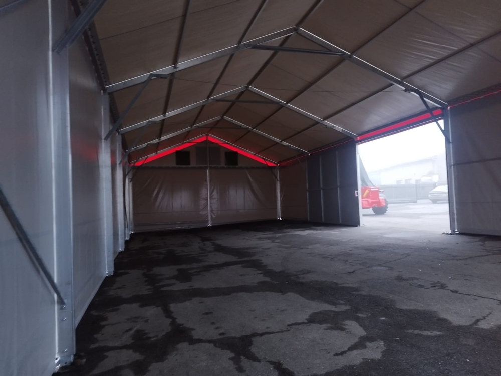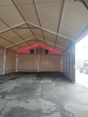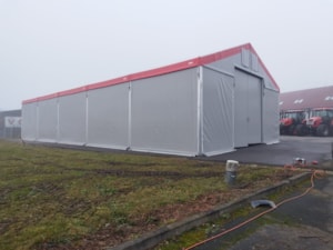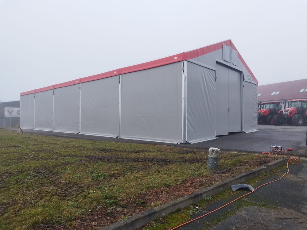 Stanová hala s pôdorysom 10 x 25 m a výškou bočnej steny 4 m má nasledujúce dodatočné úpravy...vyrovnanie konštrukcie proti svahovitému povrchu budovy s výškovým rozdielom viac ako 50 cm; konštrukcia je vyrobená z väčšieho nosného profilu 90/170 mm, čím spĺňa požiadavky pre vyššiu snehovú zónu Nového Mesta na Morave farebné riešenie opláštenia haly ladí s exteriérom spoločnosti, vrátane značenia štítu, a predné a bočné dvere s dverami pre peších dopĺňajú celkový koncept požadovaný spoločnosťou Moreau Agri Vysočina. A to je všetko :).