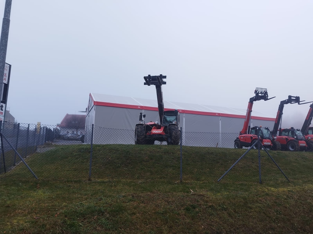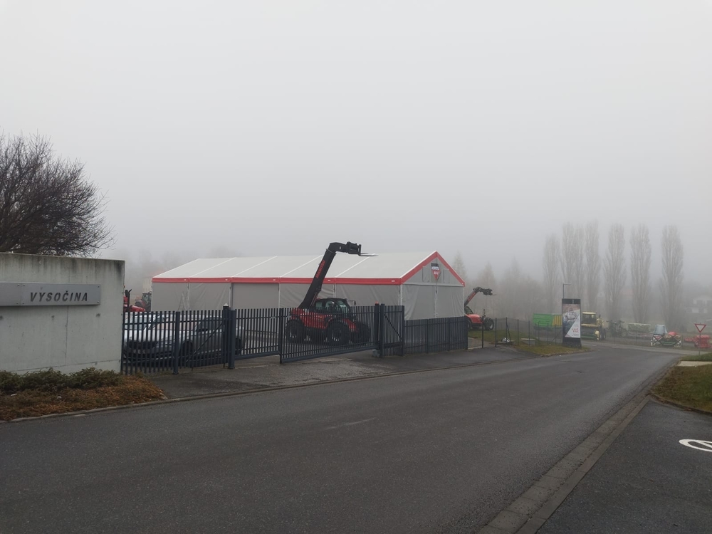 Sklonná výstavná plocha pre predajcu poľnohospodárskych strojov vo Vysočine. Túto výzvu sme prijali.