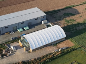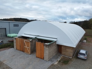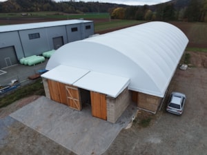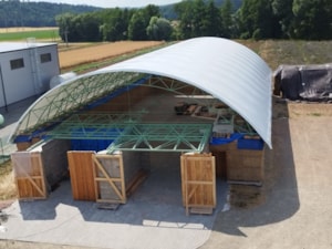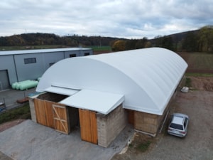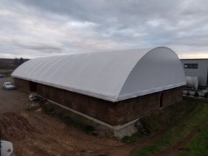 Krásny príklad plachiet vyrobených na mieru. Vašu konštrukciu môžeme zakryť vysokokvalitnými priemyselnými plachtami.